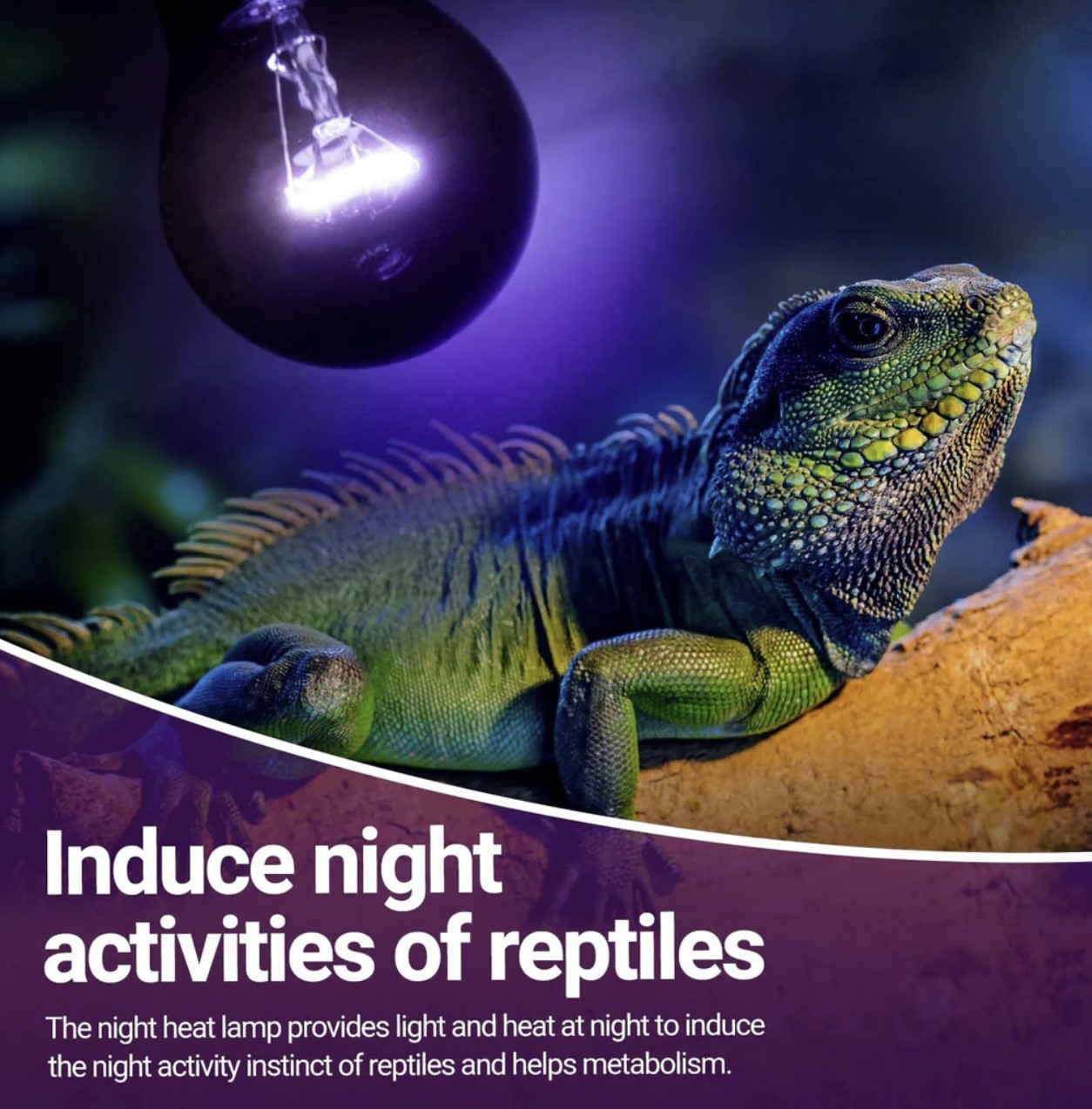 - Night Heat Bulb : This reptile heat lamp simulates natural moonlight, provides light and heat at night to induce the night activity instinct of reptiles and helps metabolism.